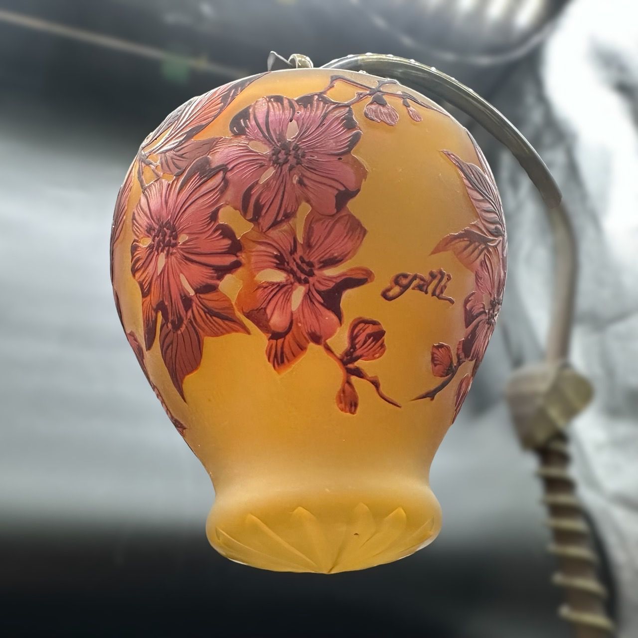 - 美術品・アンティーク・コレクション > 工芸品 > エミールガレ 一灯吊りランプ 林檎紋 カメオ彫り 被せガラス 高さ39cm エミールガレ 一灯吊りランプ 林檎紋 カメオ彫り 被せガラス 高さ