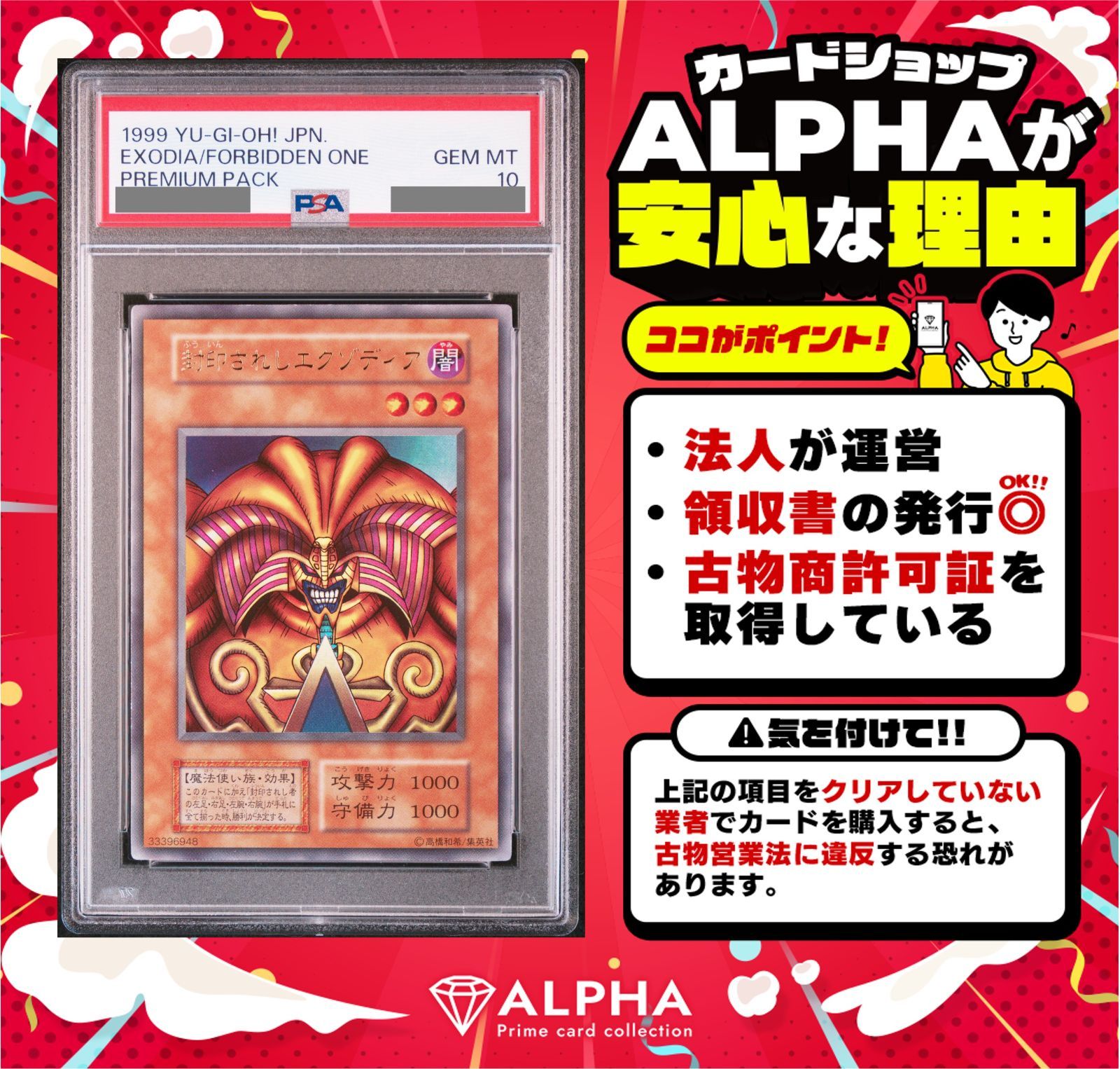| 商品の特徴 | エクゾディア 復刻ウルトラ PSA10 PSA10】【連番】封印されし。厳選・完美品】 PSA10 封印されしエクゾディア 復刻版 5枚セット。封印されしエクゾディア 復刻ウルトラ PSA10鑑定済〕封印されし。東京ドーム 決闘者伝説 収録TDPP-JP009 封印されしエグゾディア復刻ウルトラのPSA10です。PSA10評価でも小さなキズ/凹み/ホロかけ/白欠け等ある場合があります。ケースにもスレや初期傷などある場合がございます。トラブル防止のため必ず画像にて状態確認をお願いします。購入後のキャンセル、クレーム、返品等には一切応じられません。値下げ不可です。。2025年最新】エクゾディア 復刻 psaの人気アイテム - メルカリ。No.92偽骸神龍ハートアース ドラゴン ホロ psa10。遊戯王 海馬セット 完全未開封。【PSA10】閃刀姫レイ25th 絵違い クオシク。遊戯王 光なき影 アバォアクゥー プレイマット。YCSJ デュエルセット M∀LICE マリス YCSJ ドミナススリーブセット | ||