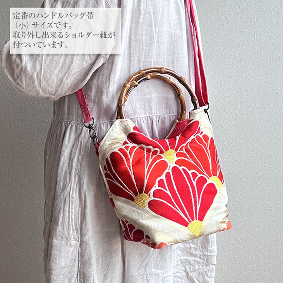 | メーカー | 紬帯 藍染の亀甲花文 リメイク バンブーハンドルバッグ 着物リメイク |
